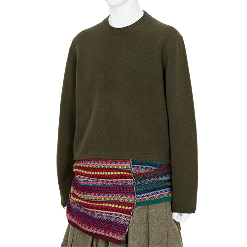 CREW NECK KNIT WITH ASYMMETRY PARTS OLIVE MULTI