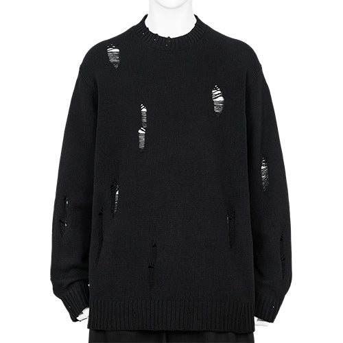 PLAIN STITCH CRASHED CREW NECK KNIT BLACK