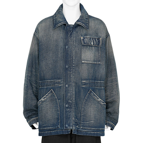 DESSIN MOTIF STAND COLLAR PADDED JACKET BLACK