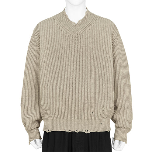 CREW NECK KNIT WITH ASYMMETRY PARTS OLIVE MULTI