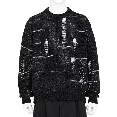 DAMAGED CREW NECK KNIT BLACK