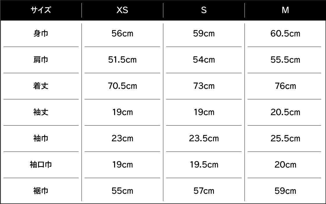 身長182cm、バスト90cm、ウエスト76cm、ヒップ88cm、肩巾53cm、袖丈63cm、頭回り59cm