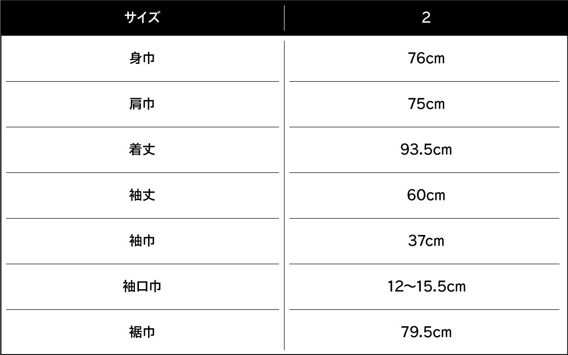 身長182cm、バスト90cm、ウエスト76cm、ヒップ88cm、肩巾53cm、袖丈63cm、頭回り59cm