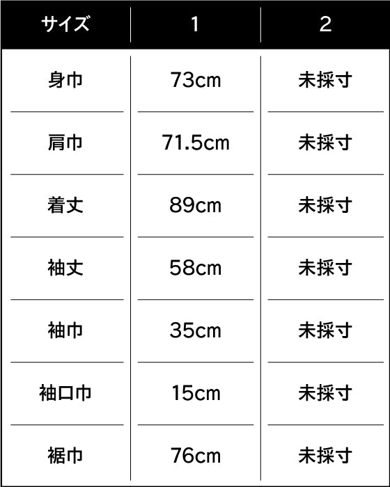 身長182cm、バスト90cm、ウエスト76cm、ヒップ88cm、肩巾53cm、袖丈63cm、頭回り59cm