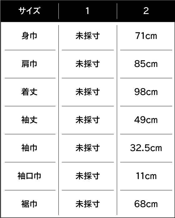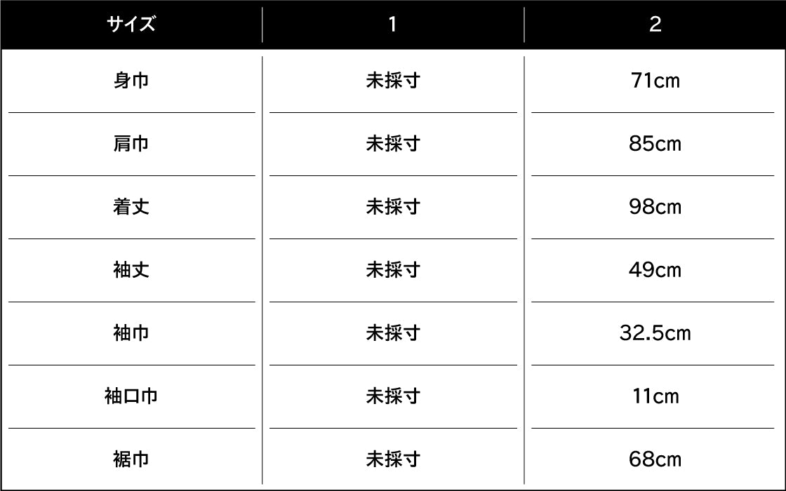 身長182cm、バスト90cm、ウエスト76cm、ヒップ88cm、肩巾53cm、袖丈63cm、頭回り59cm