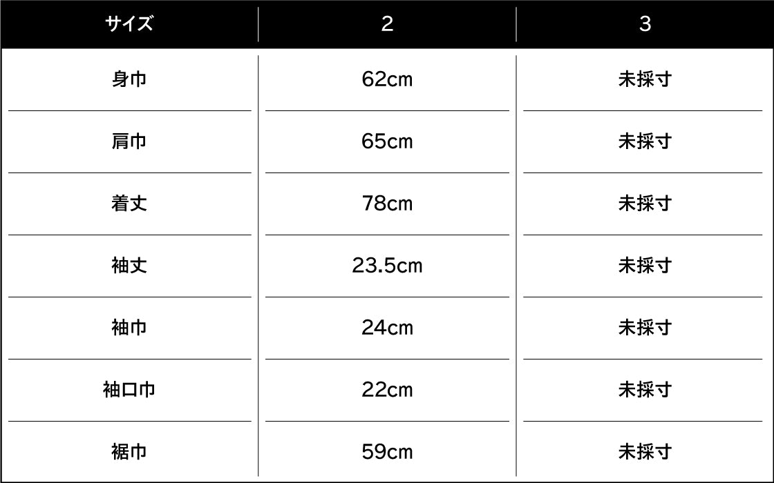 身長182cm、バスト90cm、ウエスト76cm、ヒップ88cm、肩巾53cm、袖丈63cm、頭回り59cm