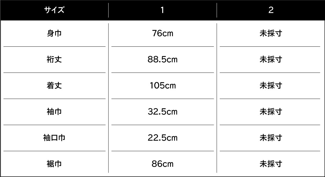 身長182cm、バスト90cm、ウエスト76cm、ヒップ88cm、肩巾53cm、袖丈63cm、頭回り59cm