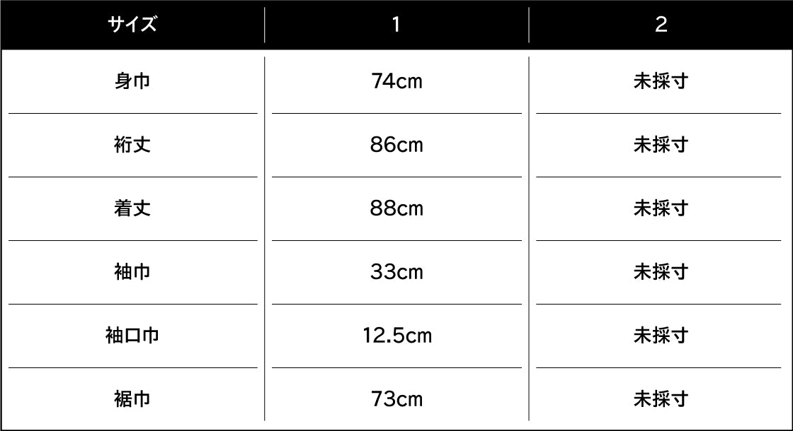 身長182cm、バスト90cm、ウエスト76cm、ヒップ88cm、肩巾53cm、袖丈63cm、頭回り59cm