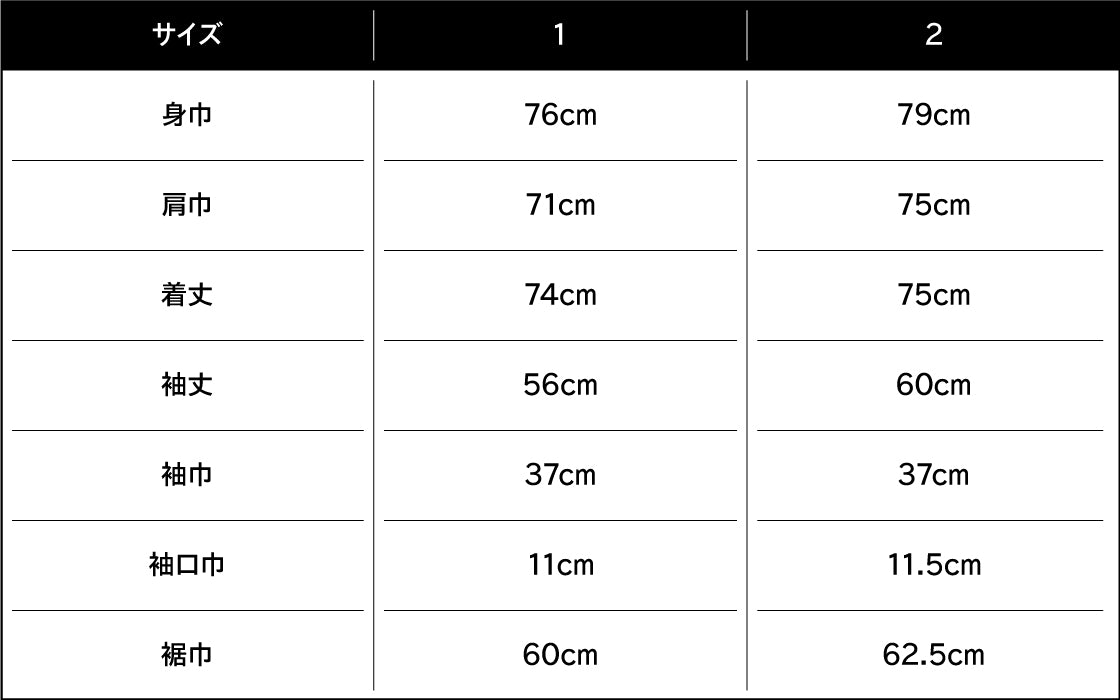 身長182cm、バスト90cm、ウエスト76cm、ヒップ88cm、肩巾53cm、袖丈63cm、頭回り59cm