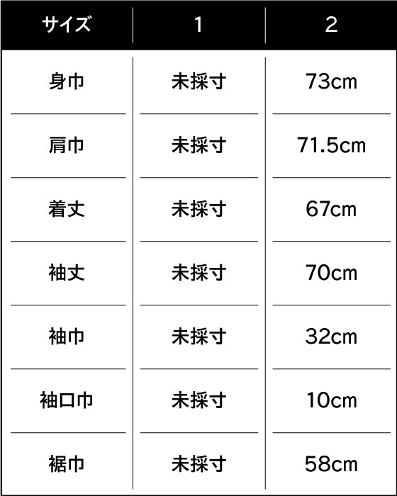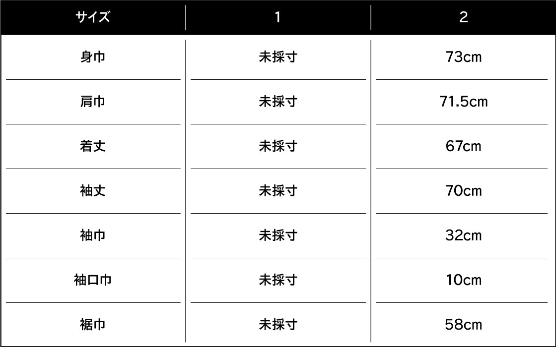 身長182cm、バスト90cm、ウエスト76cm、ヒップ88cm、肩巾53cm、袖丈63cm、頭回り59cm