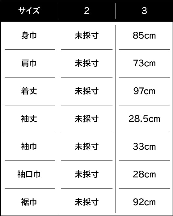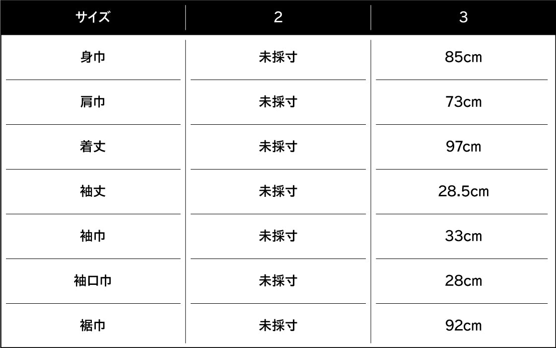 身長182cm、バスト90cm、ウエスト76cm、ヒップ88cm、肩巾53cm、袖丈63cm、頭回り59cm