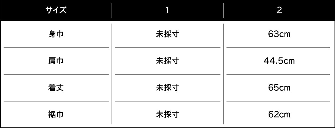 身長182cm、バスト90cm、ウエスト76cm、ヒップ88cm、肩巾53cm、袖丈63cm、頭回り59cm