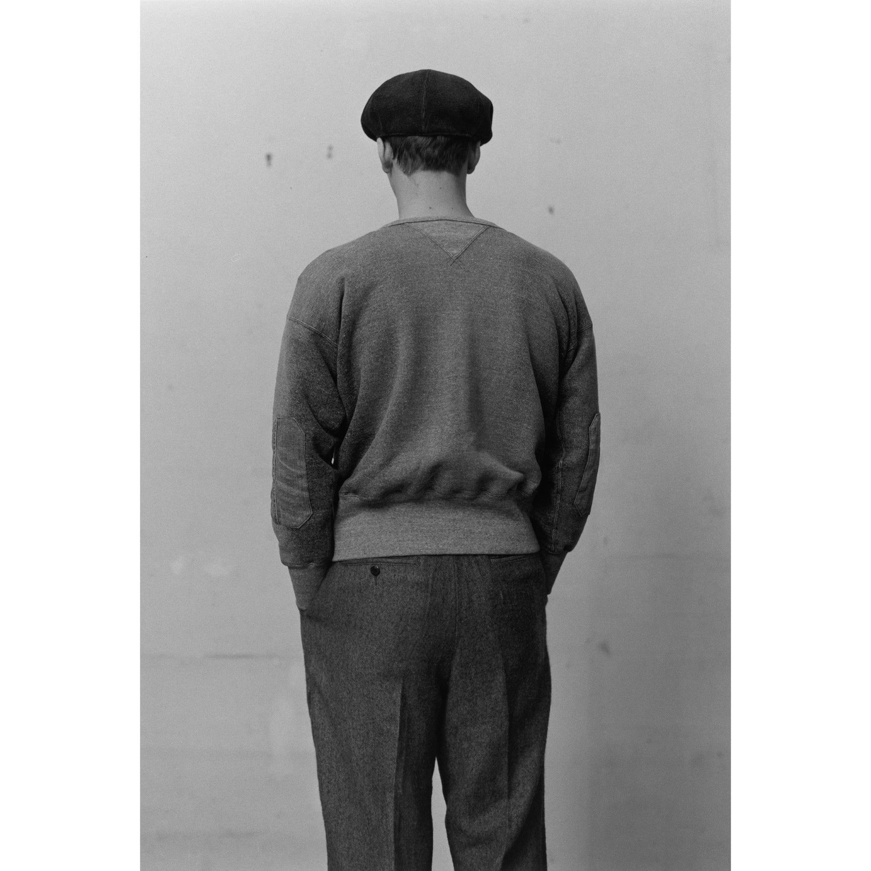 ●1940年代のアメリカのスウェットをベースにアップデートしています。長めに設計されたウエストのリブ巾と袖口のリブ巾、首元にあるVガゼットと呼ばれる汗止めが特徴的ディテールです。