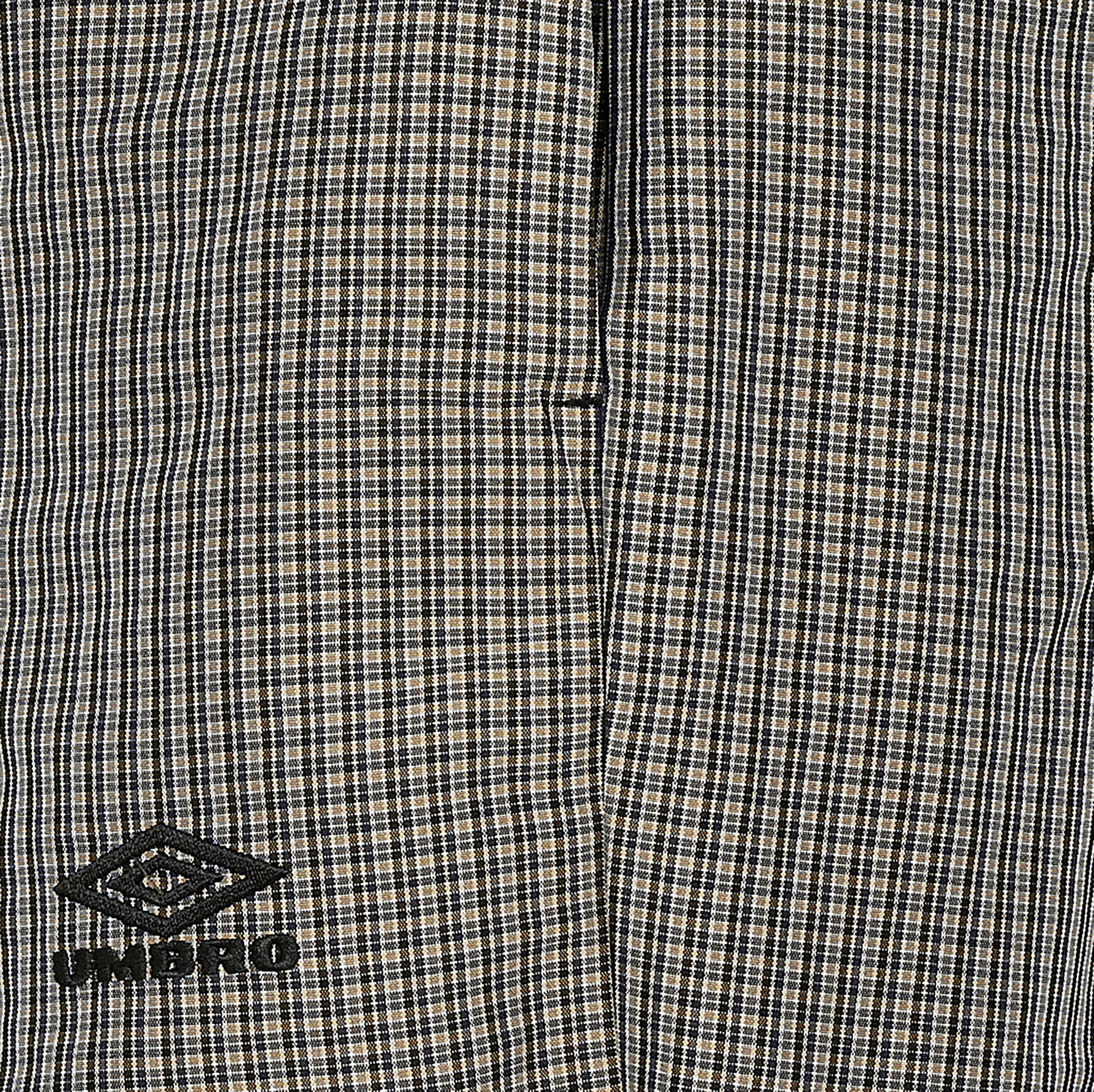 SS25より日本初展開となったSLAM JAMとUMBROによるコラボレートコレクション。AW25コレクションも引き続き、限定された店舗での取扱いとなっております。先ず、SLAM JAMについて簡単にご説明させていただきますと、1989年にルカ・ベニーニ氏によって設立されたイタリアのディストリビューションカンパニーです。また、様々なブランドディレクション事業にも携わっており、例えばニュージェネレーションデザイナーとして注目を集めている_J.L-A.L_もSLAM JAMのハンドリングブランドの一つです。いち早く才能ある若いデザイナーに目を向けて発掘するセンス、そして彼らのビジネスを支援していくスタンスがSLAM JAMが世界中から一目置かれる要因なのだと僕は思います。イタリア内でストリートからハイファッションまで取り揃えているセレクトショップの運営もしており、これまでにも様々なブランドとのコラボレーションワークを実現。中でも本コレクションは今最も注目すべき最新のコラボレーションと言えるでしょう。特にこの英国のフットボール文化に根差したUMBROコレクションは、UKトラディショナルの表れである紋章やチェック柄などをスポーツディテールとミックスし、フーリガンをインスパイア源としたスタイルを個性的に表現。マンチェスターを拠点とするUMBROとUKストリートカルチャー、ひいてはUKユースカルチャーとの関係性を代弁する非常に興味深いコレクションとして買い付けました。リアルな空気感を漂わせるデザイン性が、このコラボの存在価値を深くしていると言っても過言ではありません。本アイテムはチェック柄のアノラックとセットアップが可能なイージーパンツとなります。どこかノスタルジックな雰囲気を感じさせながらも、スポーティーさとトラディショナルを見事にミックス。シンプルなストレートカットとなり、裾にリブやドローコードは施されていません。張りのあるポリエステル生地を使用しており、クラシカルなトレーニングパンツをイメージした作りとしているのでしょう。左ポケット脇には90年代に使用されていたUMBROのクラシックロゴを刺繍で施してあります。UMBROのインラインではあり得ないUKらしさがポイントですね。UMBROでは希少なイタリア製という点も見逃せません。