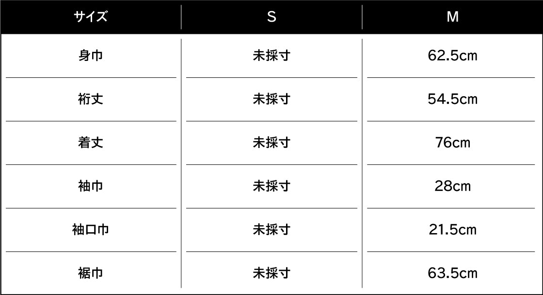 身長182cm、バスト90cm、ウエスト76cm、ヒップ88cm、肩巾53cm、袖丈63cm、頭回り59cm