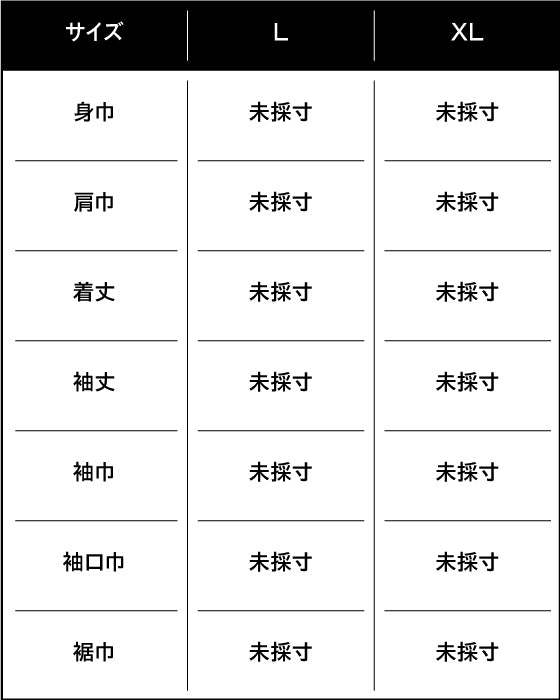 身長182cm、バスト90cm、ウエスト76cm、ヒップ88cm、肩巾53cm、袖丈63cm、頭回り59cm