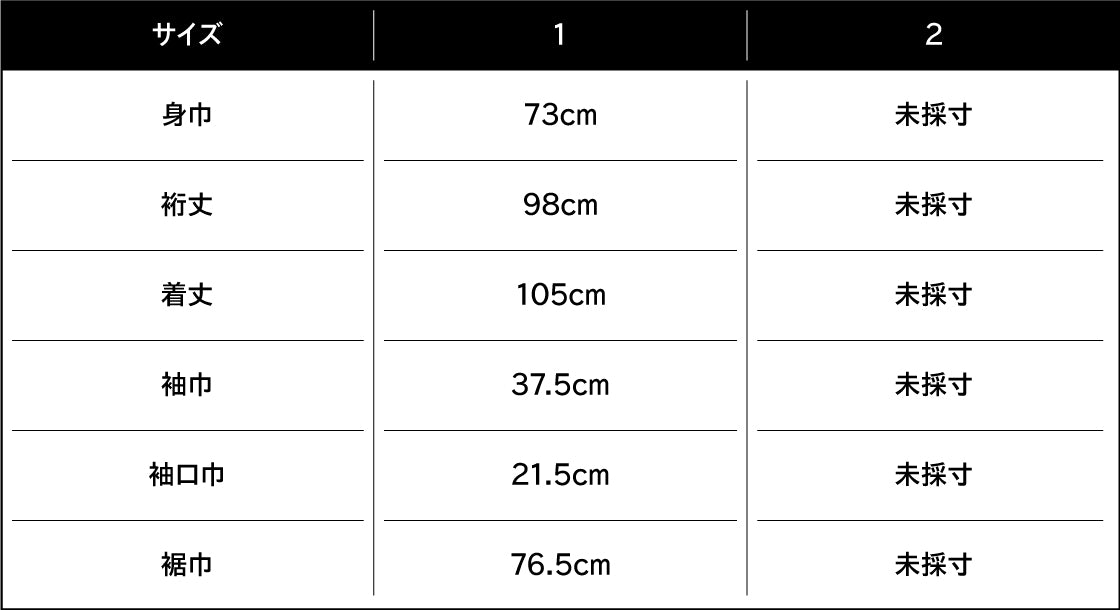 身長182cm、バスト90cm、ウエスト76cm、ヒップ88cm、肩巾53cm、袖丈63cm、頭回り59cm