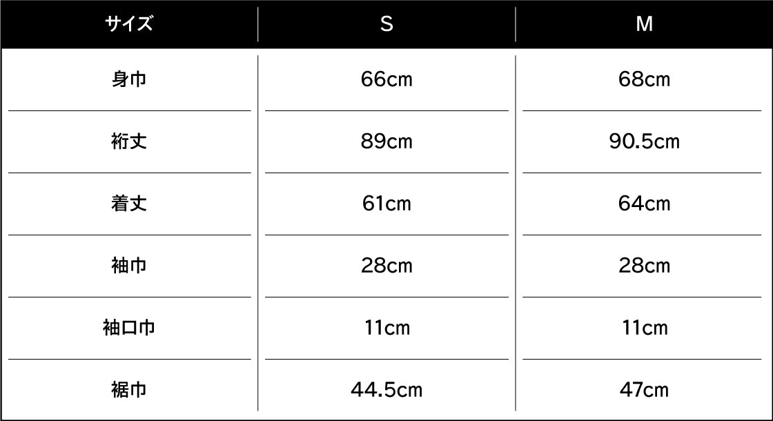 身長182cm、バスト90cm、ウエスト76cm、ヒップ88cm、肩巾53cm、袖丈63cm、頭回り59cm