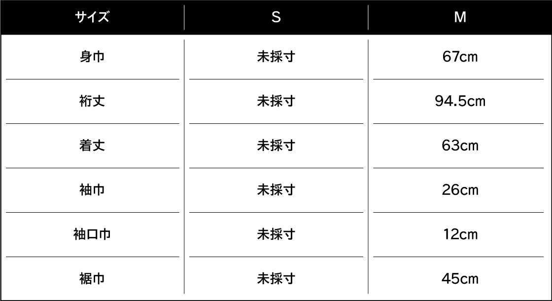 身長182cm、バスト90cm、ウエスト76cm、ヒップ88cm、肩巾53cm、袖丈63cm、頭回り59cm