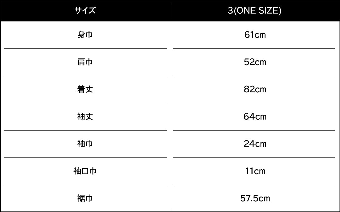 マネキン着用サイズ : 3 ( ONE SIZE )