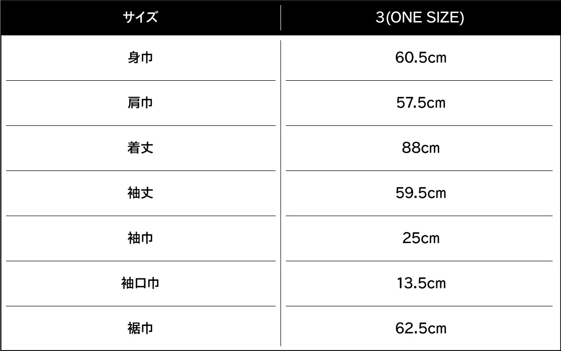 マネキン着用サイズ : 3 ( ONE SIZE )