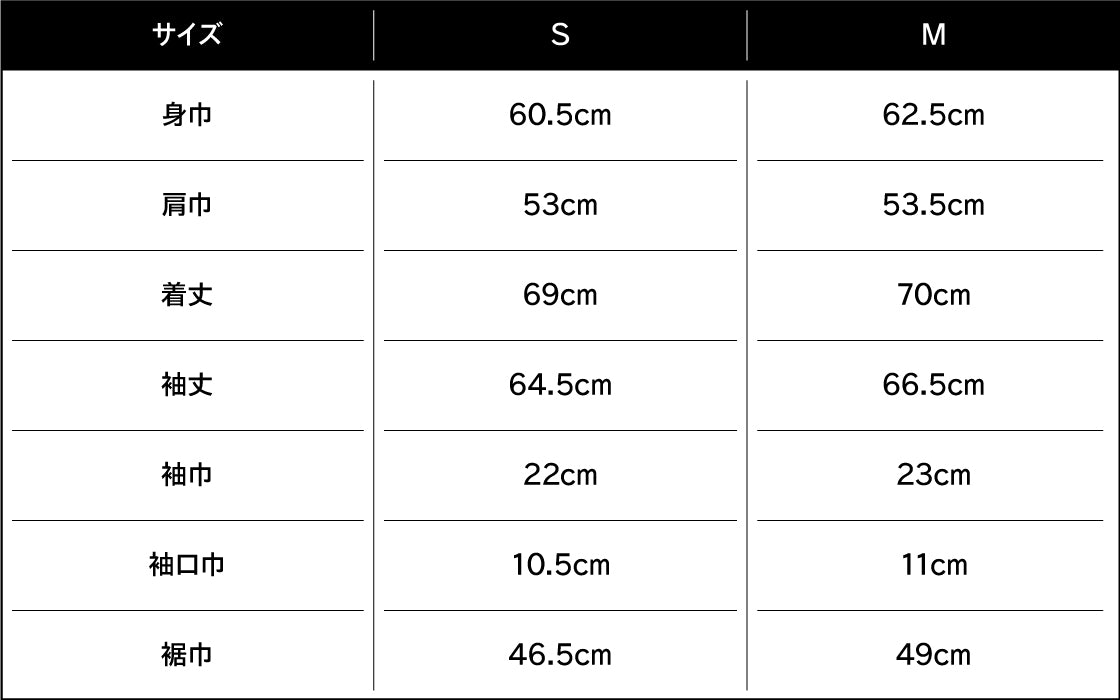 身長182cm、バスト90cm、ウエスト76cm、ヒップ88cm、肩巾53cm、袖丈63cm、頭回り59cm