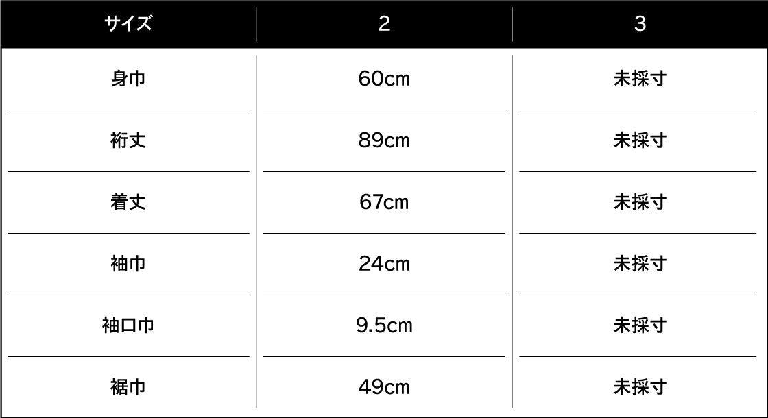 身長182cm、バスト90cm、ウエスト76cm、ヒップ88cm、肩巾53cm、袖丈63cm、頭回り59cm