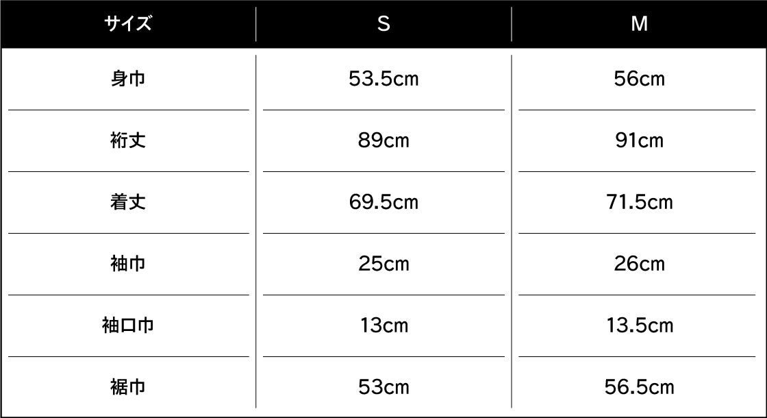 身長182cm、バスト90cm、ウエスト76cm、ヒップ88cm、肩巾53cm、袖丈63cm、頭回り59cm