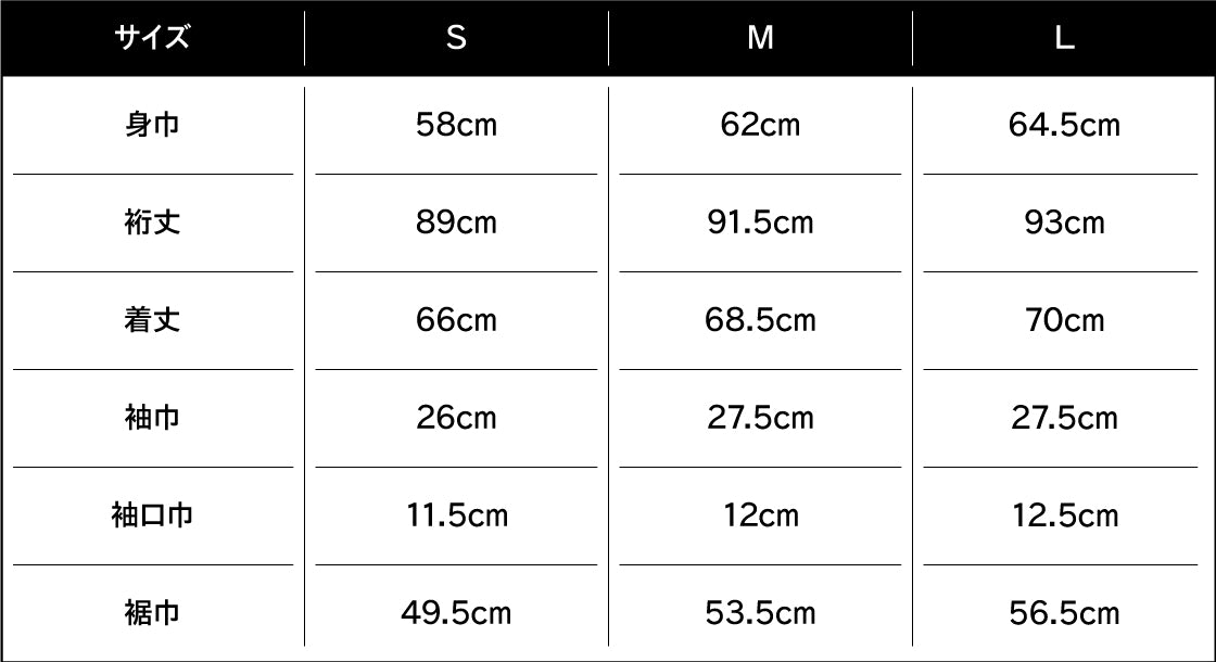 身長182cm、バスト90cm、ウエスト76cm、ヒップ88cm、肩巾53cm、袖丈63cm、頭回り59cm