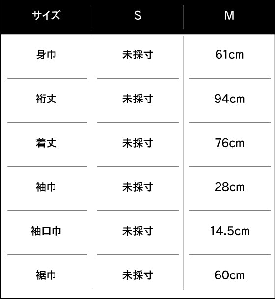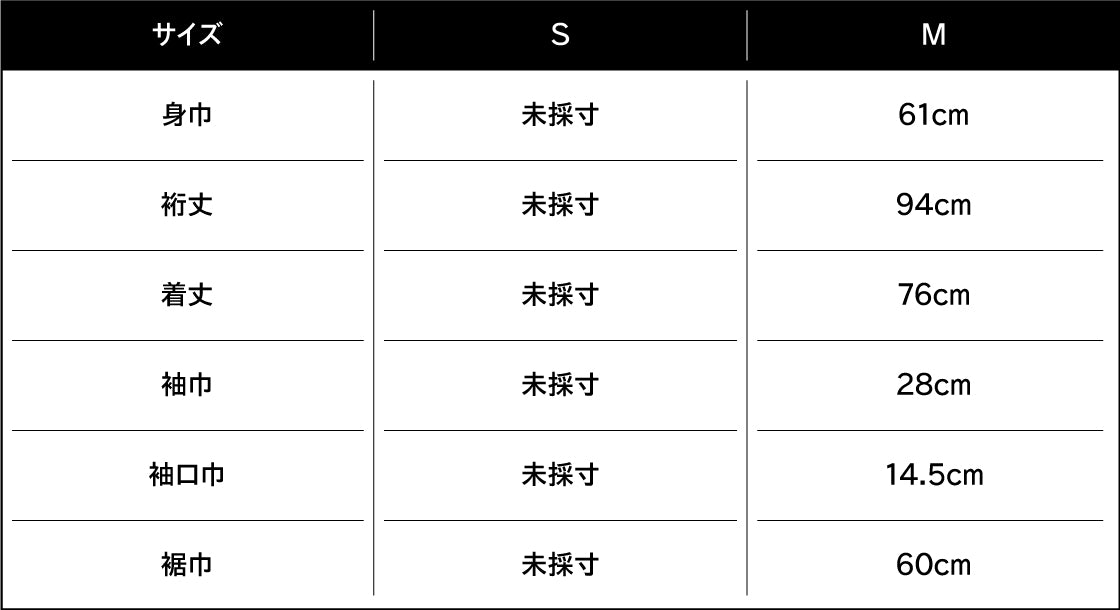 身長182cm、バスト90cm、ウエスト76cm、ヒップ88cm、肩巾53cm、袖丈63cm、頭回り59cm