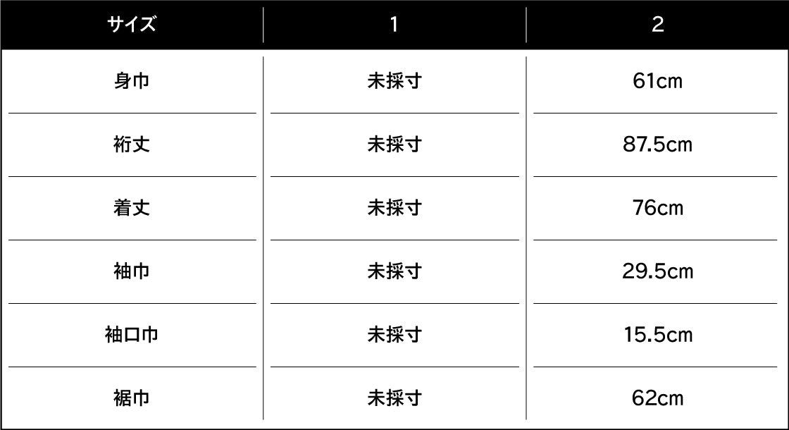 身長182cm、バスト90cm、ウエスト76cm、ヒップ88cm、肩巾53cm、袖丈63cm、頭回り59cm