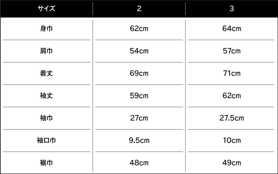 身長182cm、バスト90cm、ウエスト76cm、ヒップ88cm、肩巾53cm、袖丈63cm、頭回り59cm