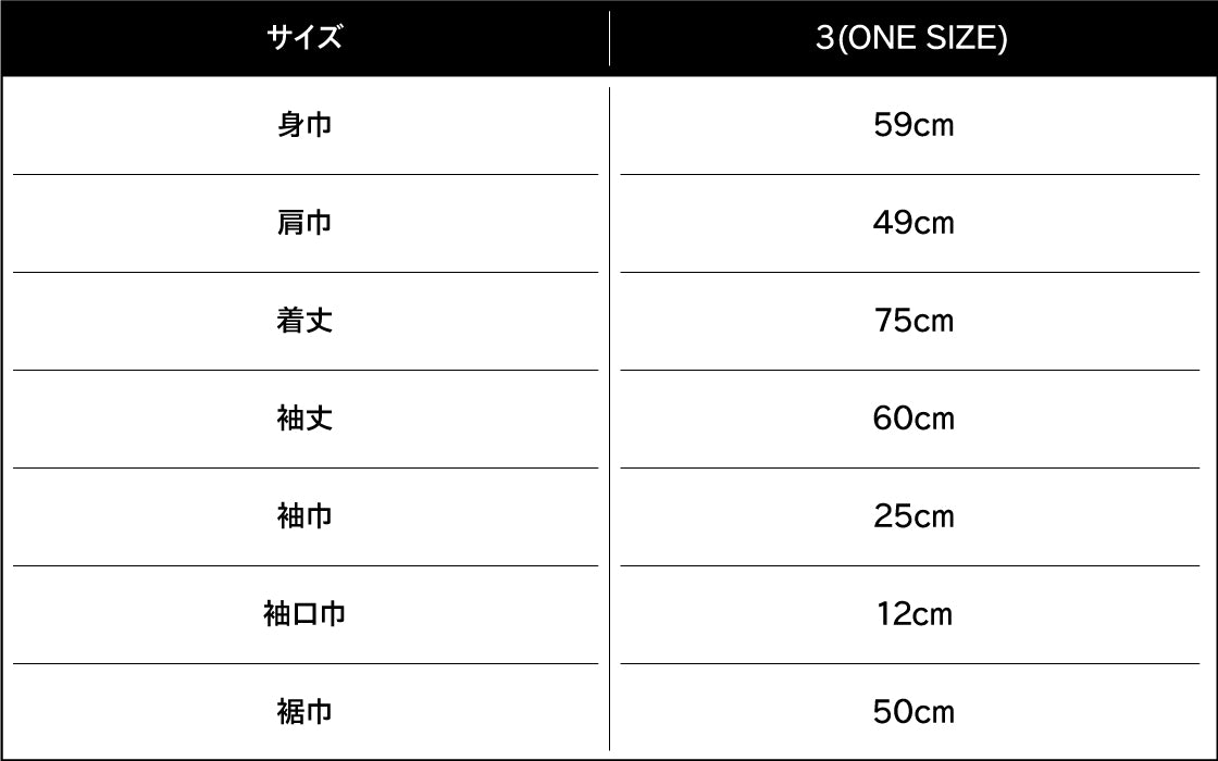 マネキン着用サイズ : 3 ( ONE SIZE )