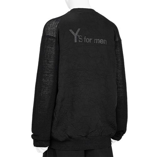 Y's for men ( ワイズ フォー メン ) は1979年にデザイナー山本耀司が最初に手掛けたメンズ・ブランドです。「Y'sを着ている女性の隣にいる男性が似合う服」というコンセプトのもと、デザイナー本人のワードローブにあるデザインが反映されたコレクションを展開していましたが、2010年春夏シーズンからブランドを一時休止。その後、AW23シーズンにパリで行われたランウェイにて13年振りに復活登場し、現在に至ります。機能的で品位があり、普遍的な価値観を基準にカッティングとシルエットに拘ったY's for men。素材の風合いを活かしつつ、着ることにより生まれる身体と服の間にある空気感や分量感、バランスを重視したデザインをポイントとしています。このシンプルなクルーネックニットはリネンとポリエステルの混紡糸を用い、糸を緩くざっくりと編み上げた甘編みが採用されており、インナーにTシャツなどをレイヤーしてラフな着こなしがしやすいスタンダードなデザインです。軽くて風通しが良く、春夏シーズンに向けた軽快なニットとなっています。また、後身頃のみに洗い加工を施したキュプラ生地を使用し、Y's for menのロゴをプリントしています。バックプリントといい、ゆったりとしたシルエットといい80年代を彷彿させますね。POUR HOMMEとは異なるシンプルなデザイン性は、Yohji Yamamotoをお召しになった事が無い方にもお勧めのニットとしてご紹介させていただきます。
