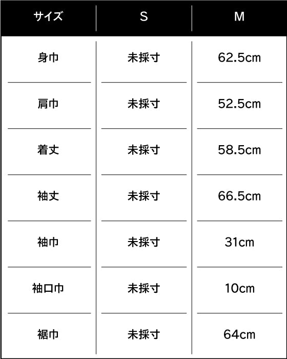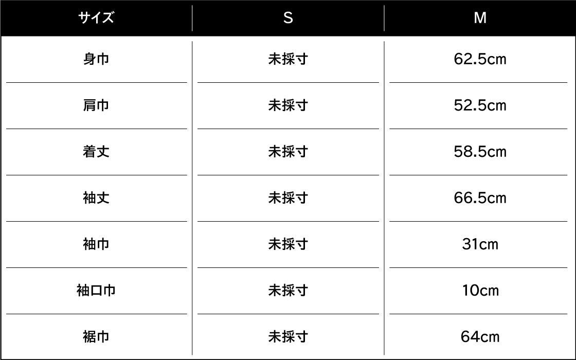身長182cm、バスト90cm、ウエスト76cm、ヒップ88cm、肩巾53cm、袖丈63cm、頭回り59cm