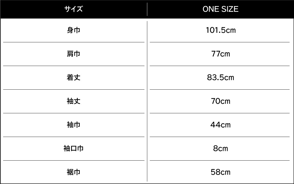 身長182cm、バスト90cm、ウエスト76cm、ヒップ88cm、肩巾53cm、袖丈63cm、頭回り59cm