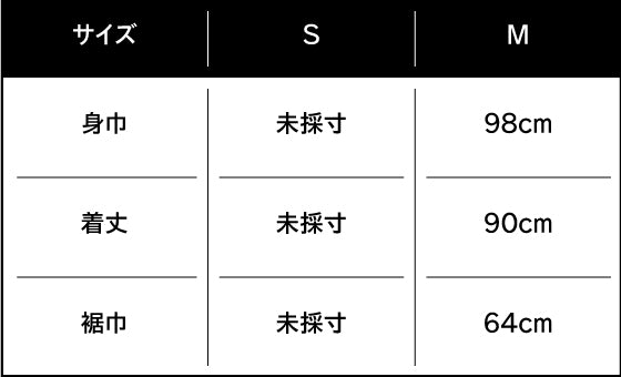 身長182cm、バスト90cm、ウエスト76cm、ヒップ88cm、肩巾53cm、袖丈63cm、頭回り59cm