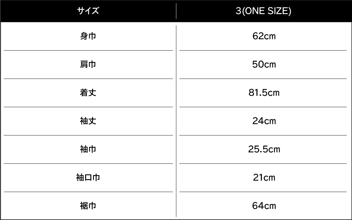 マネキン着用サイズ : 3 ( ONE SIZE )
