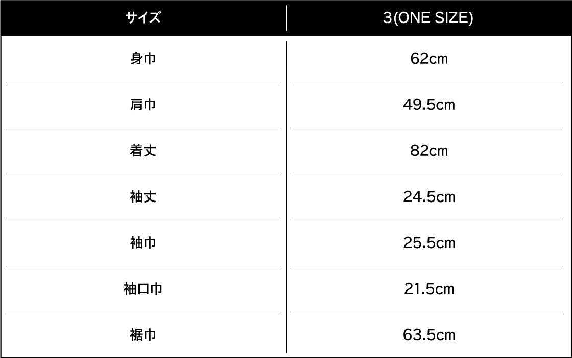 マネキン着用サイズ : 3 ( ONE SIZE )