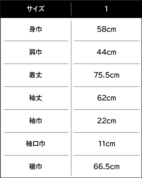 身長182cm、バスト90cm、ウエスト76cm、ヒップ88cm、肩巾53cm、袖丈63cm