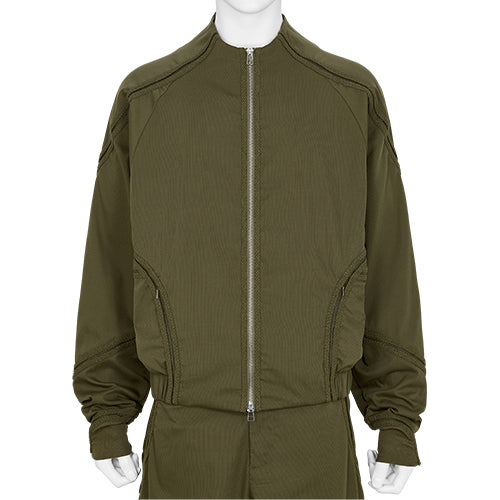 今最も世界的に注目されている若手デザイナーの一人、JEAN-LUC AMBRIDGE LAVELLE ( ジャン=リュック・アンブリッジ ) によるブランド、_J.L - A.L_ ( ジェイラル ) 。本格的なブランド展開をスタートしてからSS25で6シーズン目を迎え、世界中のバイヤーから期待を寄せられているブランドです。デザイナーのJEANはロンドン出身で、元々はファッションではなく、グラフィックデザインやスペキュラティブデザインを学んでいました。その後、服作りに関しては独学で習得。パターン製作に欠かせないソフトウェアのCADを使いこなせる技術を身に付け、同時に縫製もできるようになったというプロセスがデザイナーに至るまでのバックグラウンドとなります。デジタルを駆使すれば多くは実現を可能とする現代社会だからこそ、このような器用なニュージェネレーションが現れる時代なのかもしれませんね。SS25ニューコレクションからリリースとなった本アイテムは、裏毛のスウェット生地を用いてオーバーダイ加工されており、独特な切り替えデザインをポイントとしています。そして切り替えに沿って施された編み込みの装飾テープによってさらに個性をプラス。今シーズンは活火山などのランドスケープや地質学からインスパイアされたコレクションとしている為、自然が長い時間を経て形成したテクスチャー等をディテールに落とし込んでいるアイテムが多くリリースされております。装飾テープを用いたこの有機的なデザインもその一つと言えるのではないでしょうか。尚、このフーディーは肩が落ちるほどのややゆったりとした肩巾としながらも、着丈はやや短い設計とし、今の気分にぴったりなシルエットバランスと言えるでしょう。フロントには切り替えに沿ってポケットが左右に付いております。またフロントファスナーがダブルジップ仕様になっている点は嬉しいポイントですね。