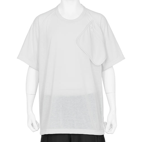 ELIMINATORのベーシックなバイイングコンセプトは英国的であることです。しかしその根本にあるのは、英国人的な発想とファッションを単純なスタイルとしてではなく信念の一つとして捉えるスタンスです。COMME des GARÇONSはアート性の高い洋服であると同時に常に新しい価値観を模索し続け、アンチな精神をベースにイデオロギーに負けない自分自身を形成する為の挑戦を、ファッションを通して表現している点に共感し買い付けしております。それはまさに英国人的な精神に通ずるものがあると確信しています。COMME des GARÇONSブランドには複数のレーベルが存在しますが、当店にて扱わせていただいている " COMME des GARÇONS HOMME PLUS " はデザイナー兼、代表取締役でもある川久保玲氏が自ら手掛けるトップレンジ。卸先は国内でも数店舗しか許されていない貴重なコレクションとなっております。SS25シーズンのテーマは「THE HOPE OF LIGHT」。昨今の混乱する世界状況を憂い嘆き、世の中に少しでも明かりを灯したいというメッセージを込めたコレクションです。本アイテムではポケットTシャツの新しい提案デザインにご注目ください。一般的にポケットTシャツと言われるものは、左胸にパッチポケットを施しているのが殆どです。しかし、必ずしもポケットはその仕様でなくてはならないという定義はありません。本製品においては、ファスナー付きポケットの袋布を右脇に挟み込み、ポケット自体を降らしているデザイン性がとても特徴的ですね。シンプルなTシャツの中に個性がしっかりプラスされており、シルエットは大きめのサイズ設定としています。尚、生地はポリエステル100%のスポーティーな生地を採用している為、速乾性に優れ、色がフェードしにくい点など、高い利便性をも感じていただけると思います。ご自宅でのお洗濯は可能ですが、畳んだ状態でネットに入れて洗われる事をお勧め致します。今までギャルソンはデザイン性が強くて難しいと思われていた方にもトライいただけるシンプルなTシャツとして買い付けてきました。