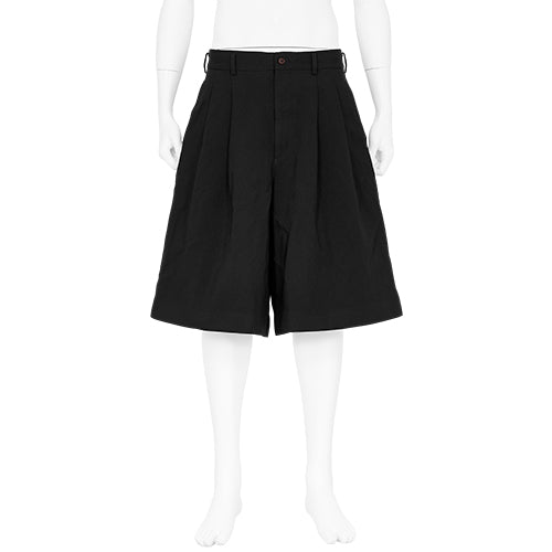 ELIMINATORのベーシックなバイイングコンセプトは英国的であることです。しかしその根本にあるのは、英国人的な発想とファッションを単純なスタイルとしてではなく信念の一つとして捉えるスタンスです。COMME des GARÇONSはアート性の高い洋服であると同時に常に新しい価値観を模索し続け、アンチな精神をベースにイデオロギーに負けない自分自身を形成する為の挑戦を、ファッションを通して表現している点に共感し買い付けしております。それはまさに英国人的な精神に通ずるものがあると確信しています。COMME des GARÇONSブランドには複数のレーベルが存在しますが、当店にて扱わせていただいている " COMME des GARÇONS HOMME PLUS " はデザイナー兼、代表取締役でもある川久保玲氏が自ら手掛けるトップレンジ。卸先は国内でも数店舗しか許されていない貴重なコレクションとなっております。SS25シーズンのテーマは「THE HOPE OF LIGHT」。昨今の混乱する世界状況を憂い嘆き、世の中に少しでも明かりを灯したいというメッセージを込めたコレクションとなっています。本アイテムは、同ブランドが得意とする縮絨加工を施したポリエステルのショーツですね。身頃両脇を大きな円を描くようにパネル切り替えとし、独特なシルエットになるように設計。曲線を活かした独特なパターンによってボリュームを生み、軽快なショーツといえども迫力が感じられるデザインです。尚、この生地は速乾性に優れ、色がフェードしにくい点など、高い利便性をも感じていただけるでしょう。もちろんご自宅でのお洗濯が可能なイージーケアとなります。ギャルソンらしい個性が感じられる、夏の特別なショーツとして買い付けてきました。