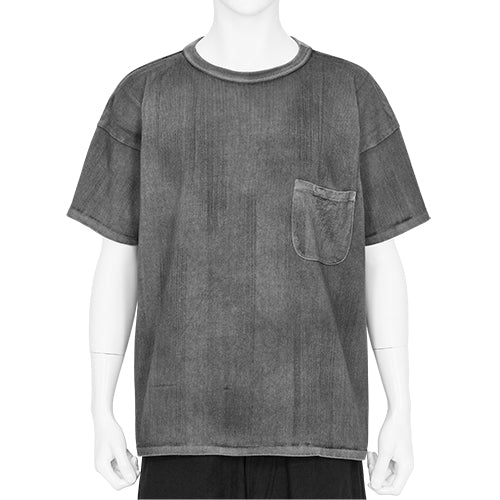 T.T ( TAIGA TAKAHASHI ) は、ニューヨークと京都に拠点を置くブランドです。創業者でありデザイナーの髙橋大雅氏は現代美術とファッションを学ぶ為に高校からロンドンへ渡り、2017年Central Saint Martinsを卒業。早い年齢から海外へ出て経験を積み、最前線で活躍するファッションデザイナーやブランドでのインターンを経て、自身がブランドを始めるにあたり、新しいデザインとは何か?現代において意味のある進化はどのように成し遂げられるのか?と、未来を模索したそうです。そして時間を掛けて思考を巡らせた結果、過去を見つめ直す事こそが必要だと気付いた事からブランドコンセプトを確立させました。「過去の遺物を蘇らせる事で、未来の考古物を発掘する」。昔からヴィンテージウエアの収集をしていた大雅氏は考古学者のごとく、約100年前の膨大な衣服やアクセサリーのアーカイブを辿り、生地や仕様を解析していきました。なぜこの衣服は時の試練に耐え、今なお存在し、輝きを放っているのか?発掘したタイムレスなデザインを、過去から受け継いだ職人技を駆使し、現代へと甦らせる事が自身の使命だと思ったのでしょう。「僕はデザイナーだが、デザインはしない」。という言葉を残している通り、1900年初頭の衣服を忠実に再現し、そして100年先へ継承させる服作りがT.Tの特徴と言えます。また、海外へ出て再認識させられた点が自身が日本人であるという事。古くから大切にされてきた日本人としての「侘び寂び」の精神は、経年変化によって変わる衣服の表情を美しいと感じられる心に通じるものがある。若干20代で、その精神性に気付いたきっかけは洋服だけに興味を抱いていたわけではなく、若くしてアートの世界にも没頭していたからではないでしょうか。物作りのプロセス、そして表現する事に対する執念の様なものが彼を形成していったのだと想像できます。本アイテムは炭鉱から発掘された1910年代頃のアメリカのカバーオールをリファレンスとしています。1920年代のアメリカで始まった大量生産、大量消費社会の中、これまでの職人が一点ずつ丁寧に作る伝統から、手に技が無くとも大量製作が可能な物作り体制となっていった歴史的背景にフォーカス。直線的な縫製、平面的なパターンへの簡易化、生地の耐久性やポケットの形状など、全て重労働に耐える為のワークウエアの設計が本アイテムからは窺い知れます。現代のデザイン要素は全くと言ってよいほど存在せず、衣服というよりも道具に近い本作。当時の仕様を継承しつつ、素材感を考慮し、脇下の溜まりを改善する為に肩傾斜を付けて再構築されています。尚、今シーズンは大雅氏の蒐集コレクションにあった1930年代のスポーツジャケットにて使用されている「TWEEDUROY」の生地を再現。「TWEEDUROY」とはコーデュロイにプリントを施し、ウールのツイードに似せた生地のことで、主に少年用の服や学生服に使用されていました。当時、ウールの生地よりも耐久性があったという理由から開発されたと推測されています。パーツに関しても再現性に拘り、敢えて鉄製を使用し、錆び止め加工は施していません。本パーツは素材の特性上、経年変化によって発生する錆が衣服に移染することがありますのでご注意ください。