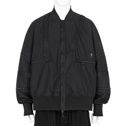 釣りに関連する道具やウエアで有名なDAIWAが打ち出しているファッションレンジD-VEC ( ディーベック ) とALMOSTBLACKのコラボレーションによるカプセルコレクションよりAW25新作が入荷致しました。海や川といった過酷な自然環境の中で釣り人の命を守る為に開発されてきた物作りのノウハウを活かし、ウエアに関しては特に、GORE-TEX®︎を用いたプロダクトに確固たる自信を持っているDAIWAブランド。長い歴史と共に培われてきた技術力 ( 生産背景 ) を使ってALMOSTBLACKのミリタリーをベースとしたファッション感を踏襲し、都会のアクティビティウエアへと進化させていくプロジェクトとなります。本アイテムには新素材となるWINDSTOPPER BY GORE-TEX®︎ LABS ( 撥水性・防風性・透湿性が特徴 ) を採用。表地にはリサイクルポリエステルニット、メンブレンは環境配慮型のePE ( フッ素を含まない ) を使用し、そして裏地にはリサイクルフリースを採用した軽量性と伸縮性、保温性をポイントとした新しいGORE-TEX®︎ ( WINDSTOPPER ) ファブリックとなっています。GORE-TEX®︎特有のパリパリした生地感ではなく、例えるならば厚みのあるジャージーのような質感ですね。デザインに関しては、米軍のミリタリーウエアで採用されている、補強を目的としたテープ使いに着目しアレンジを加えたとの事。さらに前身頃に施された大きなポケットデザインが特徴と言えます。バッグを持つ必要がないほど、何でも収納できそうなサイズ感のポケットが非常に個性的ですね。ウエストにはドローコードが付属されており、ショートジャケットの裾巾をさらに絞る事で着丈の短さを強調する事が可能。今回も世界で活躍されているアーティストの加藤泉氏によって描かれたキャラクターがフラップ付きポケットにリフレクトプリントされています。