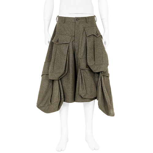 ELIMINATORのベーシックなバイイングコンセプトは英国的であることです。しかしその根本にあるのは、英国人的な発想とファッションを単純なスタイルとしてではなく信念の一つとして捉えるスタンスです。COMME des GARÇONSはアート性の高い洋服であると同時に常に新しい価値観を模索し続け、アンチな精神をベースにイデオロギーに負けない自分自身を形成する為の挑戦を、ファッションを通して表現している点に共感し買い付けしております。それはまさに英国人的な精神に通ずるものがあると確信しています。COMME des GARÇONSブランドには複数のレーベルが存在しますが、当店にて扱わせていただいている " COMME des GARÇONS HOMME PLUS " はデザイナー兼、代表取締役でもある川久保玲氏が自ら手掛けるトップレンジ。卸先は国内でも数店舗しか許されていない貴重なコレクションとなっております。AW25シーズンのテーマは「TO HELL WITH WAR」。様々なミリタリーウエアを壊し、解体し、戦争に対するアンチテーゼを表現。不安定な世界情勢によって巻き起こる戦争への否定的な想いを創作に落とし込み、洋服を通してメッセージを投げかけています。パリで行われたショーでは、全編に渡りミリタリーのユニフォームを解体しテーラードジャケットとして再構築したルックで表現され、非常に評価も高かったとの事。また、リアルなアーミーヘルメットに平和を象徴とする花を装飾したヘッドピースをスタイリングに使用する事で、戦争のイメージと対比させる前向きなメッセージも組み込まれております。本アイテムはイギリス軍やフランス軍で採用されていたセレモニージャケットをベースとし、今シーズンのテーマに沿ってCOMME des GARÇONSの視点から再構築されております。ショーLOOK No.2で使用されており、スカートと組み合わせたコーディネートでしたが、男らしいスタイリングにとても目を引かれ買い付けました。軍師官が着用しているスタンドカラーのジャケットをカスタムするようなアイディアによって、フロント前立てと胸ポケットのフラップ部分、そして袖口には金ボタンが装飾されています。素材には地厚なギャバジンウール生地を採用し、リアルなミリタリー感を色濃く打ち出した生地選定もポイントの一つですね。ミリタリーウエアを壊し、テーラードへと昇華させる一つの方法論として、同ブランドらしい発想が詰まった仕上がりとなっていると思います。